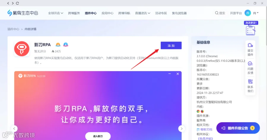 影刀官方已经支持紫鸟浏览器了,但很多人不知道怎么给紫鸟浏览器添加插件,今天就来一帧一帧地带大家添加影刀插件。
