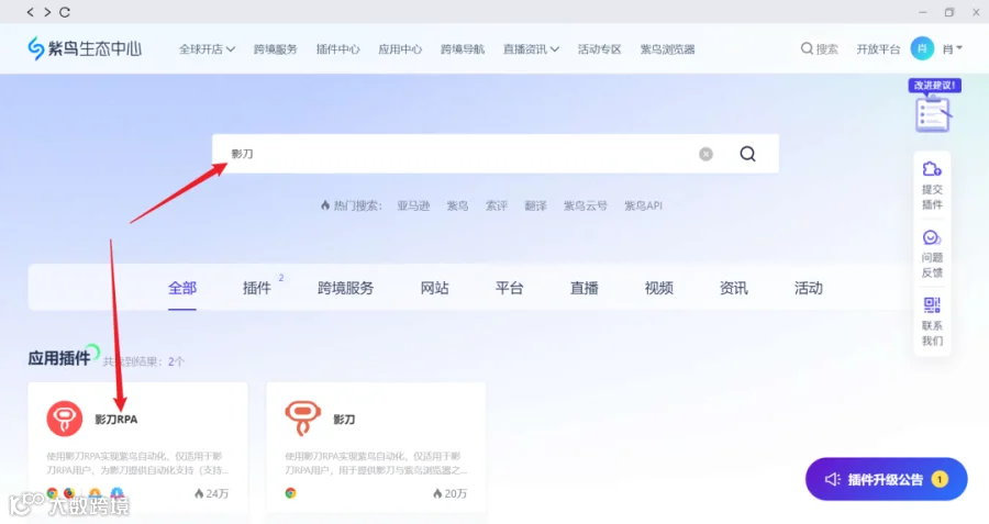 4、在搜索框输入「影刀」,选择「影刀 RPA」