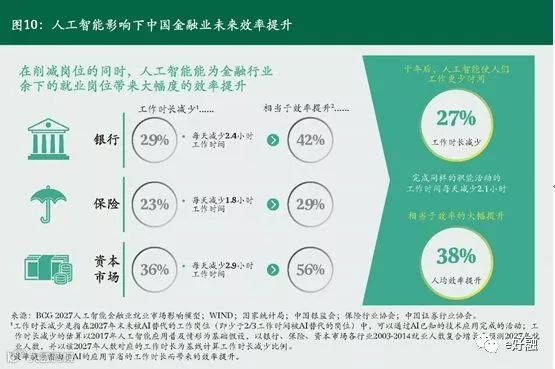 从效率提升看,未被颠覆岗位的工作时长预计减少27%,相当于日均节省2.1小时,整体效率提升38%。其中,资本市场效率提升最显著,其次为银行。产品开发、投资决策等环节因AI替代低认知任务,实现生产力跃升[k]。