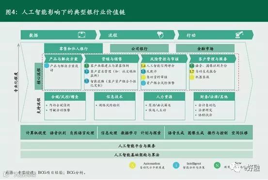 人工智能正通过数据、算法与应用场景的深度融合,推动自动化升级、智能决策和商业模式创新,深刻改变金融业价值链。BCG研究指出,AI在金融领域的应用涵盖计算机视觉、语音识别、自然语言处理、数据学习、计划与探索等十大关键技术,驱动行业向“自动、智能、创造”三大方向演进[k]。