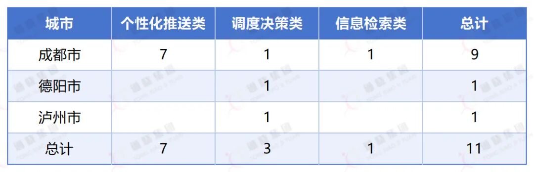 目前信息服务类算法备案共计11个,成都9个,德阳和泸州各1例,以个性化推送类算法备案为主。