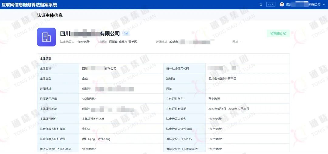 主体信息:营业执照、企业负责人及算法负责人身份证;
