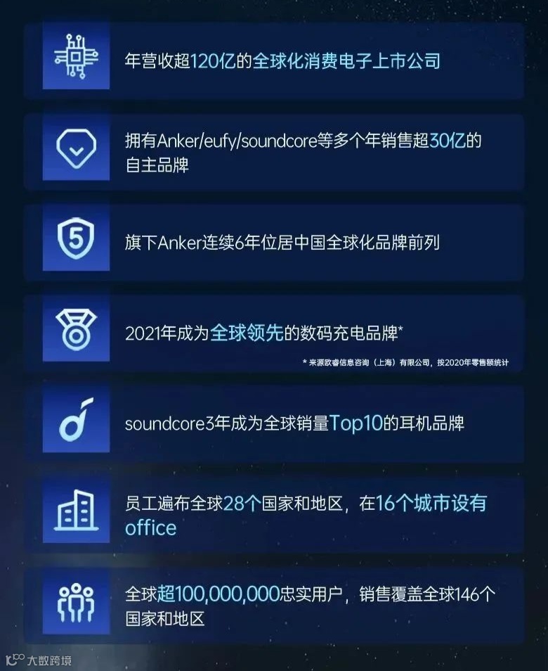 拥有Anker/eufy/Soundcore等了个年销售了0亿的自主品牌