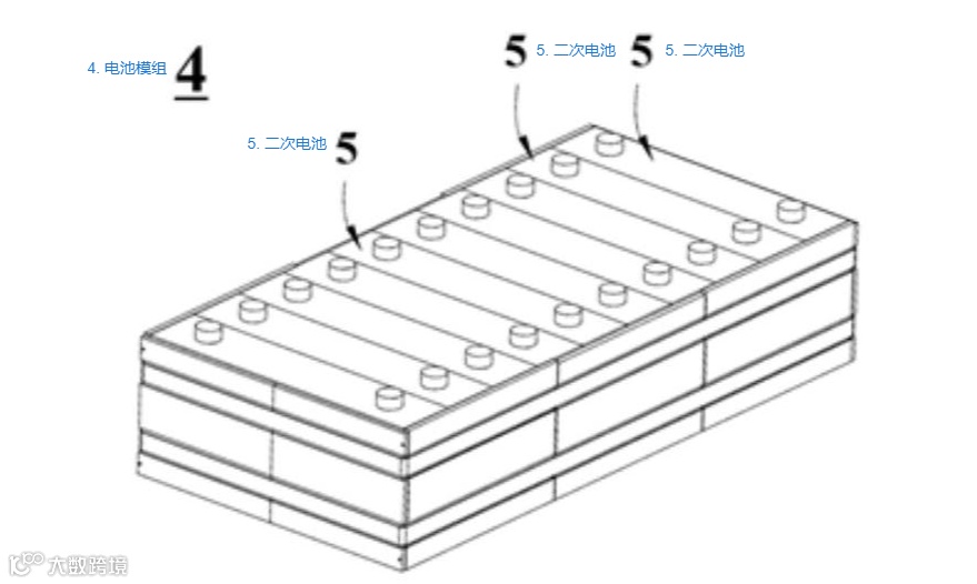 结构形态:由多个二次电池 5 组成,多个二次电池沿模组长度方向依次排列(或按实际需求自定义排布),可通过紧固件固定,也可额外设置含容纳空间的外壳,将多个二次电池收纳于壳体内。其作用是整合单节二次电池,提升整体输出功率与容量,适配中大型用电场景的能量需求。