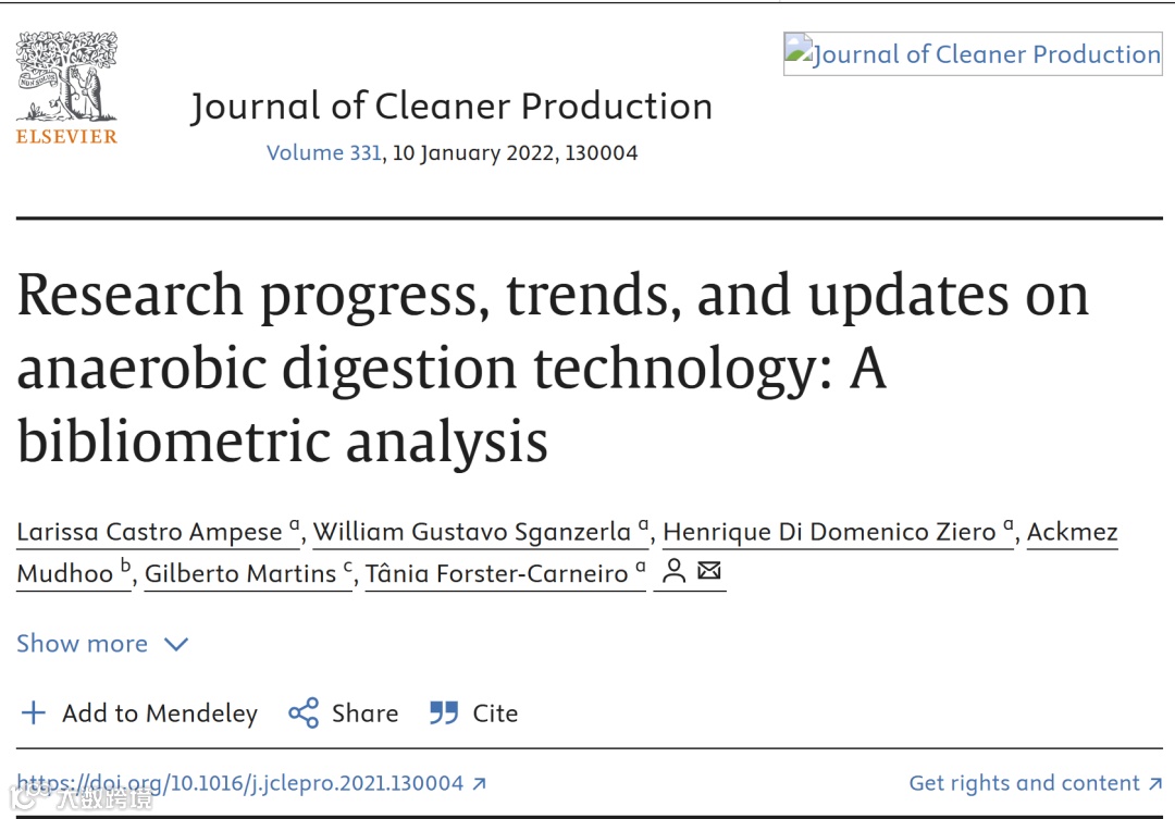 文献1:Research progress, trends, and updates on anaerobic digestion technology: A bibliometric analysis