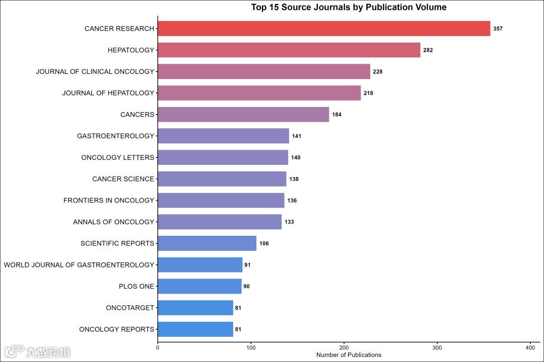 右侧(SO):代表来源期刊(如 Cancers、Journal of Hepatology、Gastroenterology 等)。