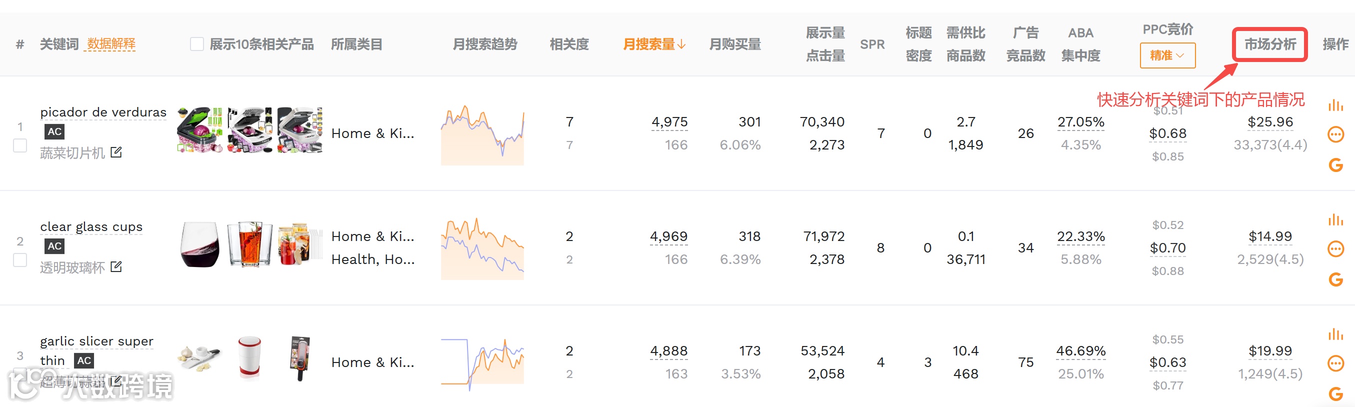 1、在卖家精灵【关键词挖掘】中输入你关注的大类关键词(如“kitchen tool”)