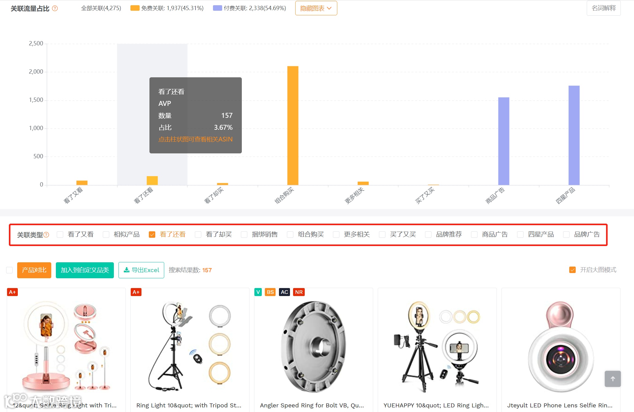 1、找出类目热销ASIN,用卖家精灵【关联流量】挖掘周边产品。