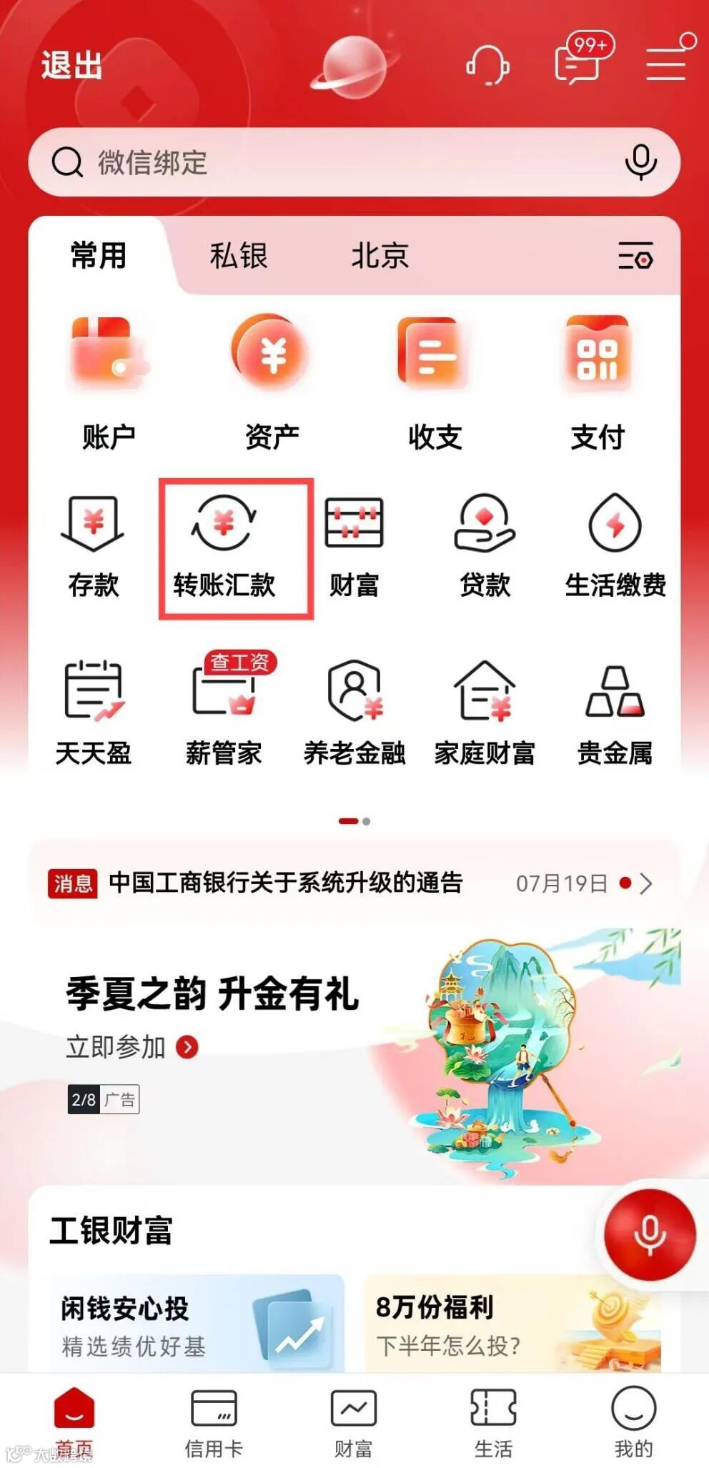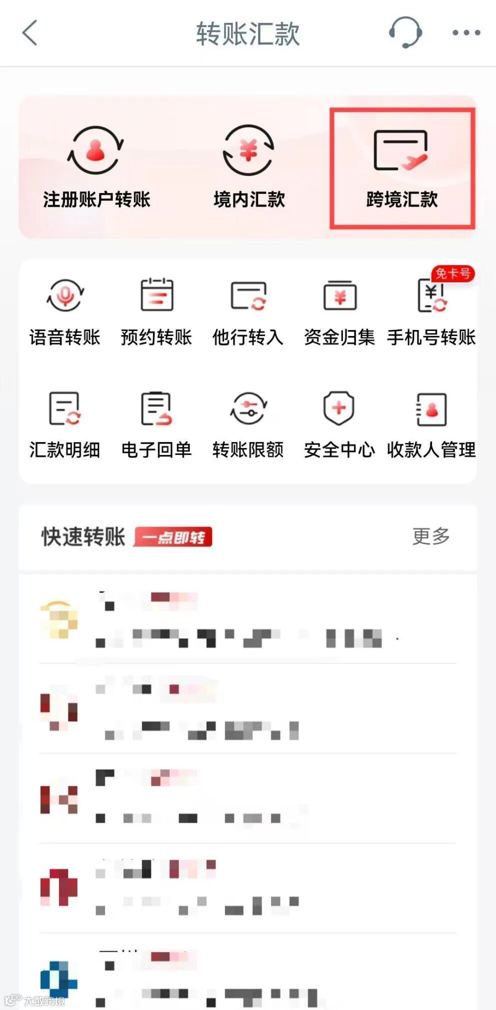 • 返回APP首页 → 点击「转账汇款」→ 选择「跨境汇款」→ 点击「向境外工行汇款」