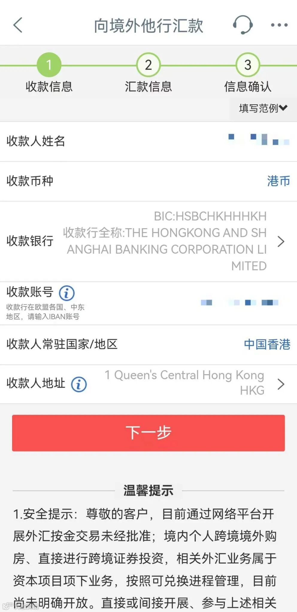 • 账号:填写工银亚洲的港币往来账户(非银行卡号)