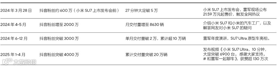 数据显示,雷军抖音粉丝增长领先于小米汽车销量爆发,进入成熟期后,粉丝基数与内容输出、预订闭环、多平台联动共同驱动销量持续攀升,形成正向反馈循环
