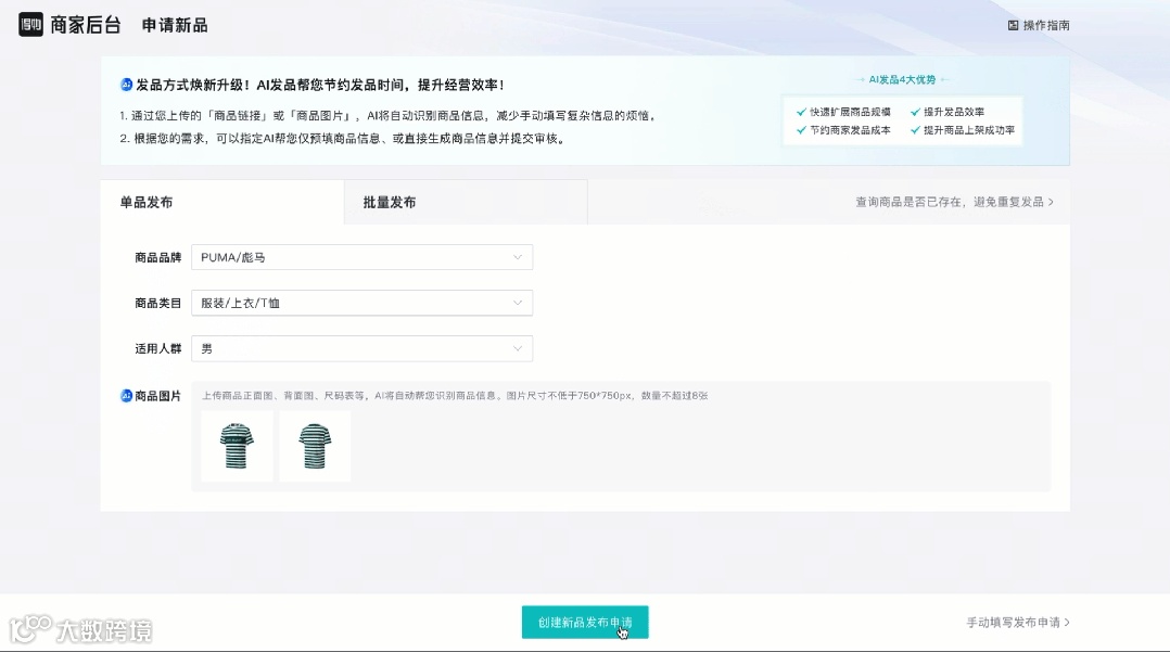 【功能入口:得物商家后台-交易-品牌直发-物料申请】