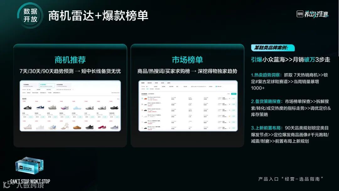 【功能入口:得物商家后台-经营-选品指南-商机推荐/市场榜单】