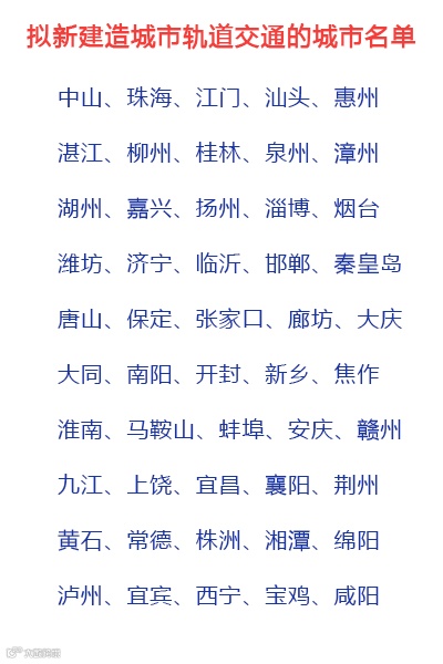 而未来,更多的三线城市将加入到轨道交通建设大军中。规划显示约50城拟上马城市轨道交通项目(拟新建造城市轨道交通的城市名单见文末)