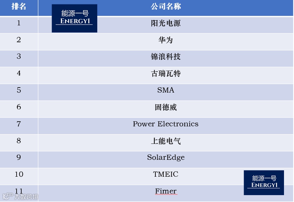 地面电站的逆变器出货排名上,阳光、华为、上能电气、和特变电工、锦浪科技列入第一、第二、第五、第九、第十。Power Electronics、TMEIC、Ingeteam等进入第三、第四、第六和第七。