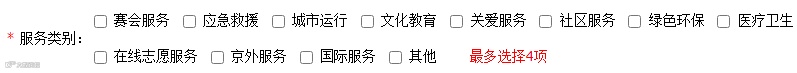 服务类别根据本团体所从事志愿服务活动的类别进行选填(最多选择4项)