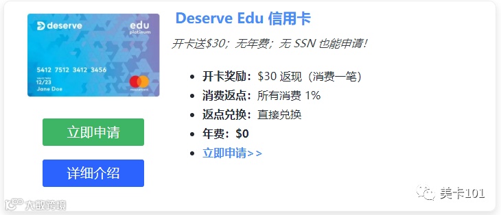 - Deserve EDU(支持无 SSN 申请)