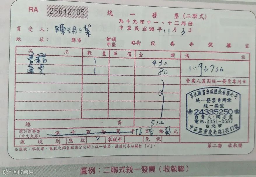 - 收款机发票:适用于B2B及B2C交易,分为三联式(存根联、收执联、扣抵联)和二联式(存根联、收执联)[k]。