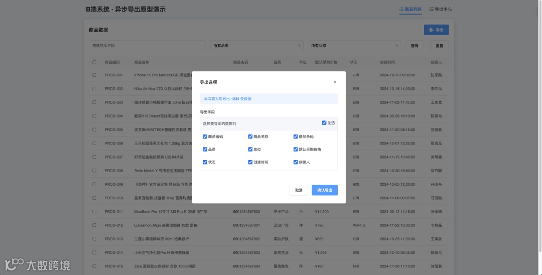 在B端系统中,数据导出是高频且关键的操作。无论是商品管理人员需要导出数万条商品信息进行批量处理,财务人员需导出百万级订单流水用于对账,还是运营团队需要获取海量用户行为数据进行深度分析,这类需求无不考验着系统的处理能力和用户体验。