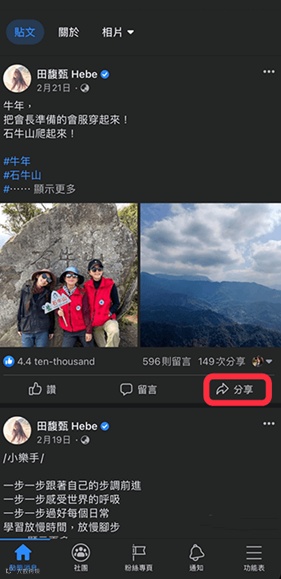开启该则 FB 贴文后,点选右下角的「分享」。