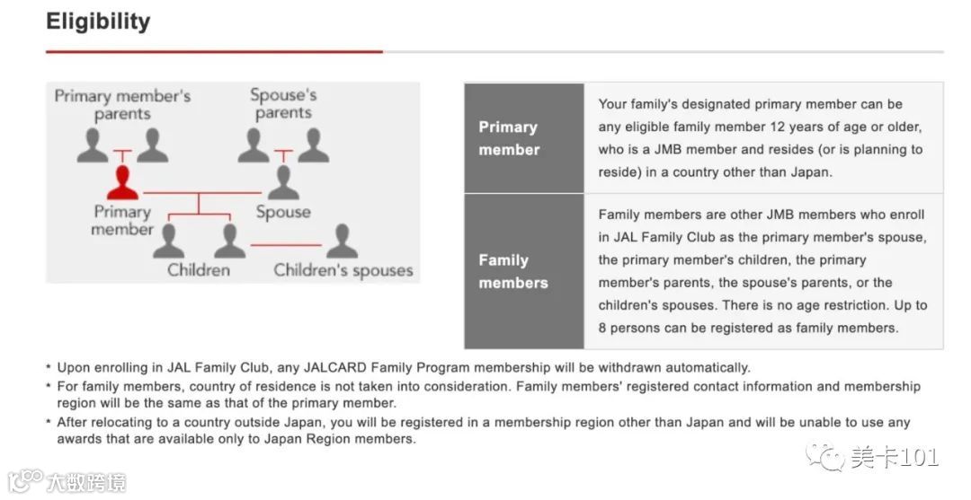 非日本居民可参与,最多8人加入,成员间可免费合并里程。加入需每人支付1,000里程,且成员须为二级以内亲属关系[k]。