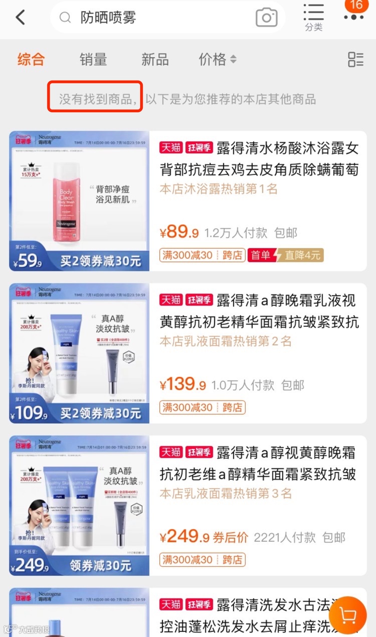 目前,露得清和艾维诺的天猫海外旗舰店及官方旗舰店中都已无防晒喷雾这类产品。