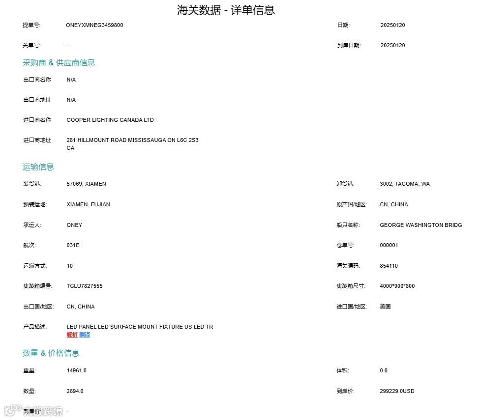 搜索出来的提单详情信息就是如下图所示,海关数据本身提单数据大部分都是没有联系方式的,所以海关数据的核心优势功能其实是分析功能,分析国外市场选品,分析国内同行和国外采购商。那海关数据可以开发客户吗?是可以的,开发客户技巧这个下面我给大家单独分析一下。