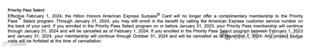 - 原享有的Priority Pass(PP)机场贵宾厅年度入场券权益已取消;老用户需在2024年1月31日前完成注册,福利可持续至2024年10月31日[k]。