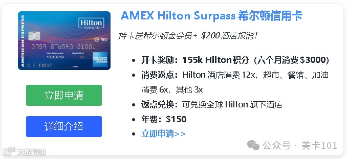 2024年3月,希尔顿Surpass信用卡开卡奖励上调至155,000积分,同时多项持卡权益发生变更,涉及年费、报销福利及会员待遇[k]。