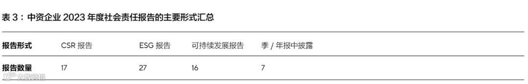 在2023年度各企业发布的社会责任报告的形式上,无论面向国内还是国外,都是较为多样的。如表3所示,CSR、ESG及可持续发展报告依旧是多数企业选择的主要报告形式,且企业季度报告和年度报告中也常有社会责任信息披露。