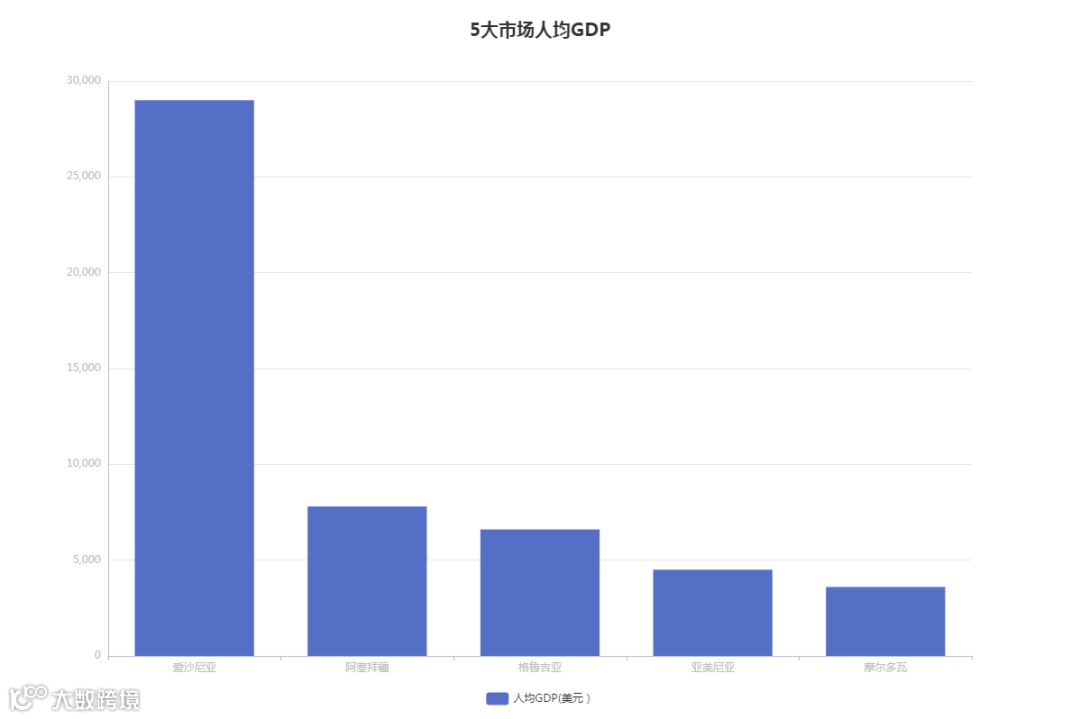 阿塞拜疆市场最大(人口多,经济强),爱沙尼亚消费力高但市场小。