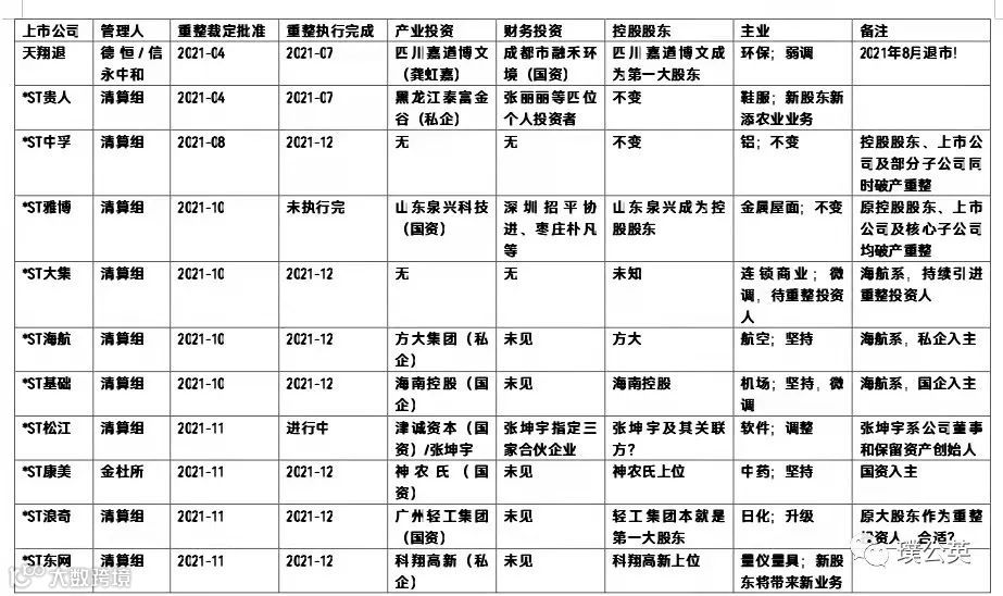 本文聚焦2021年19家完成重整的上市公司,重点分析其投资人结构与经营方案[k]。