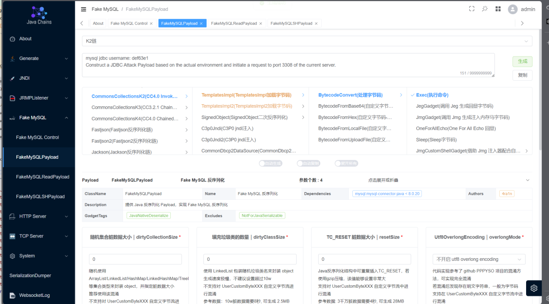 本地配了CC4的Gadget,使用Java-Chain生成链子,打本地LADP反序列化。
