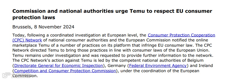 Temu同样面临挑战。自2024年10月起,Temu就因产品合规问题成为欧盟调查对象。欧盟CPC负责人Michael McGrath指出,在Temu上测试和销售的产品中,不完全符合欧盟规则和安全标准的商品占比高达96%。这一情况引起了欧盟的高度重视,相关调查仍在持续进行中。