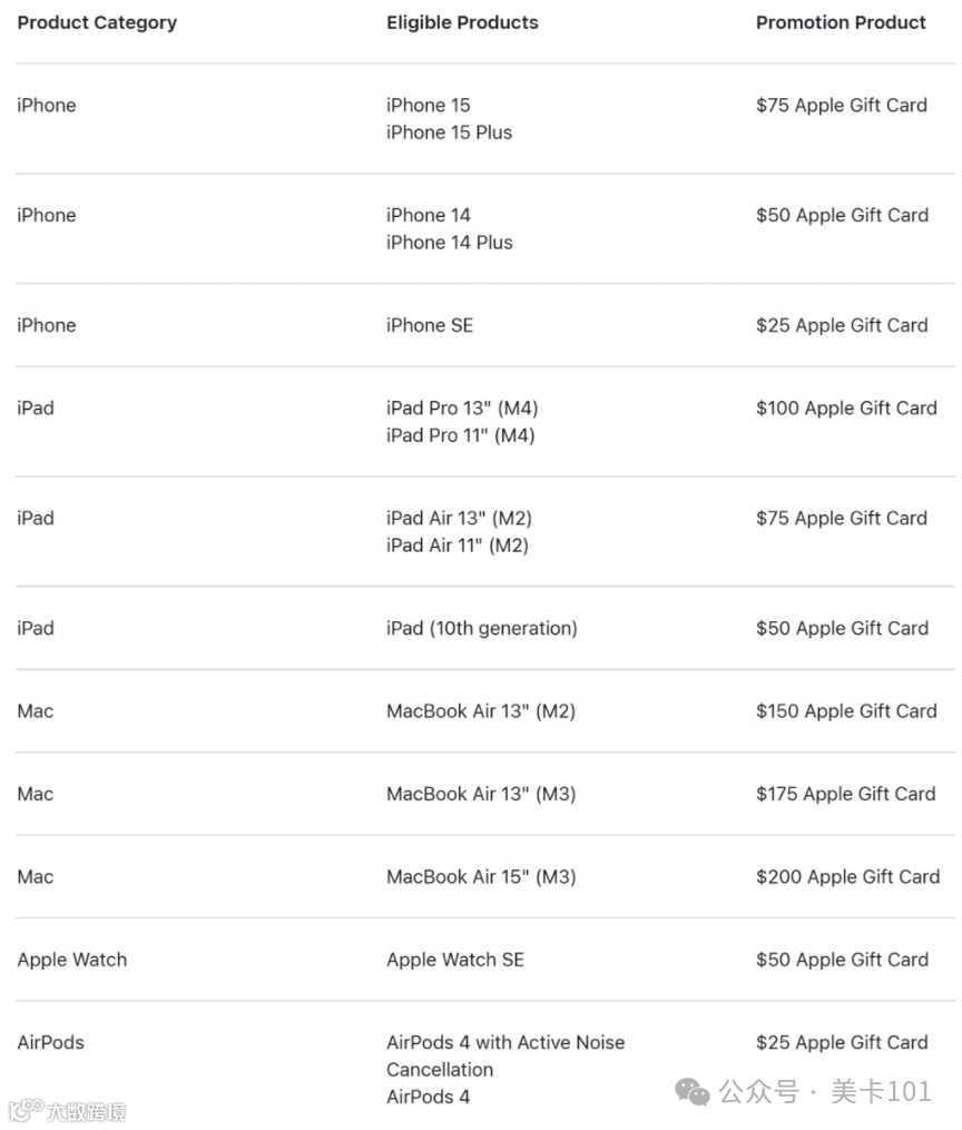 黑五期间购Apple产品赠送相应金额的Apple礼品卡(GC),不可与教育折扣叠加使用[k]。