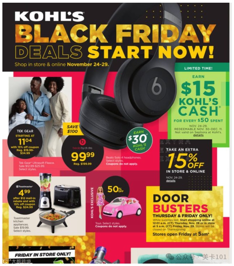 黑五期间可叠加“满$50返$15 Kohls Cash”活动,部分厨房小家电可实现“免费返现”(Free after rebate)[k]。