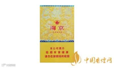 南京(细支九五)的包装以明黄色为主色调,搭配金色装饰,整体风格尊贵奢华。