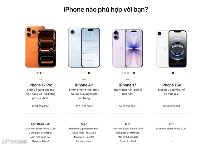 苹果越南官网已更新iPhone 17系列产品价格表。(截图)