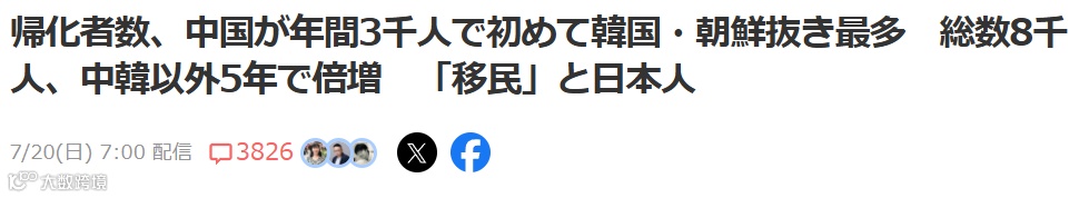 3122人!50年来首次反超韩朝,中国人成为归化日本籍“第一大户”...