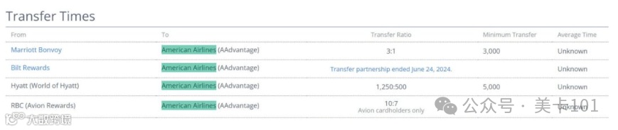 此前开放的Citi Thank You Points及Bilt积分1:1转AA服务目前已暂停[k]。