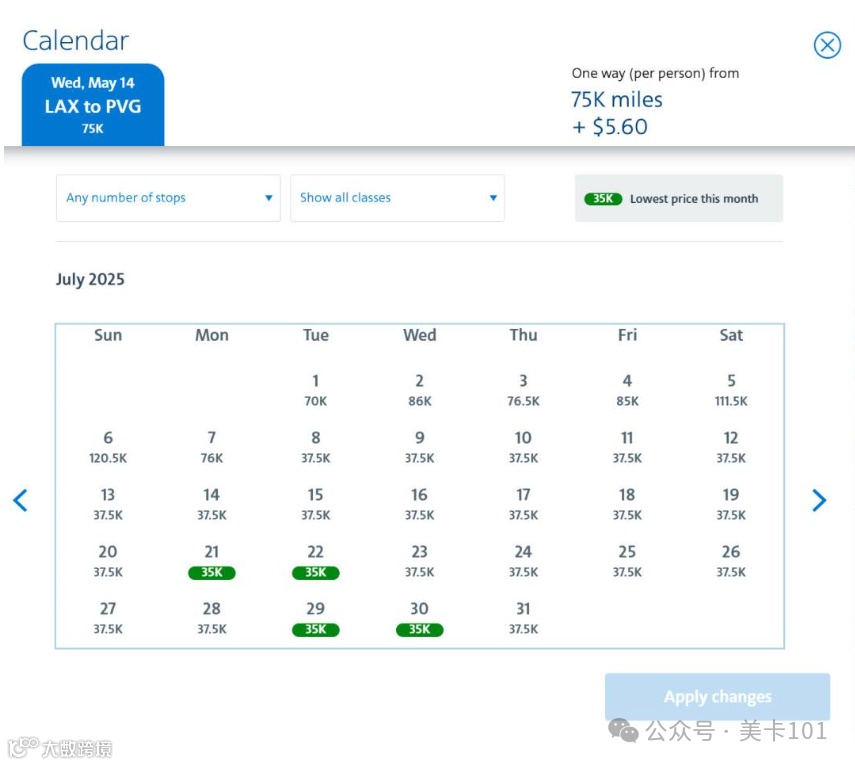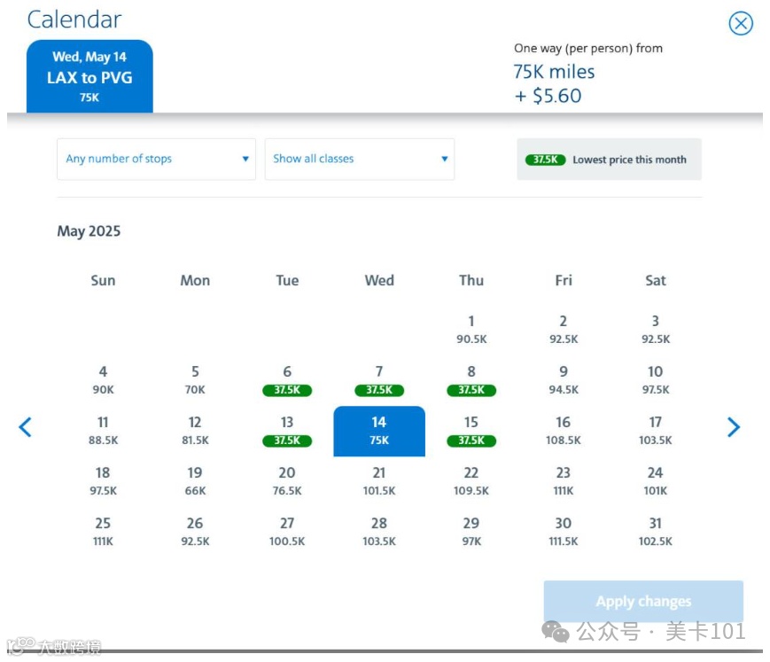 启用“Redeem Miles”选项后,系统将展示各日期所需里程,体现动态定价差异。若出行日期灵活,可使用日历视图查找近期最低里程档期[k]。