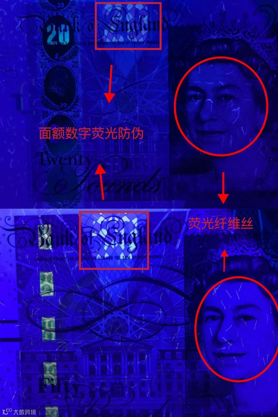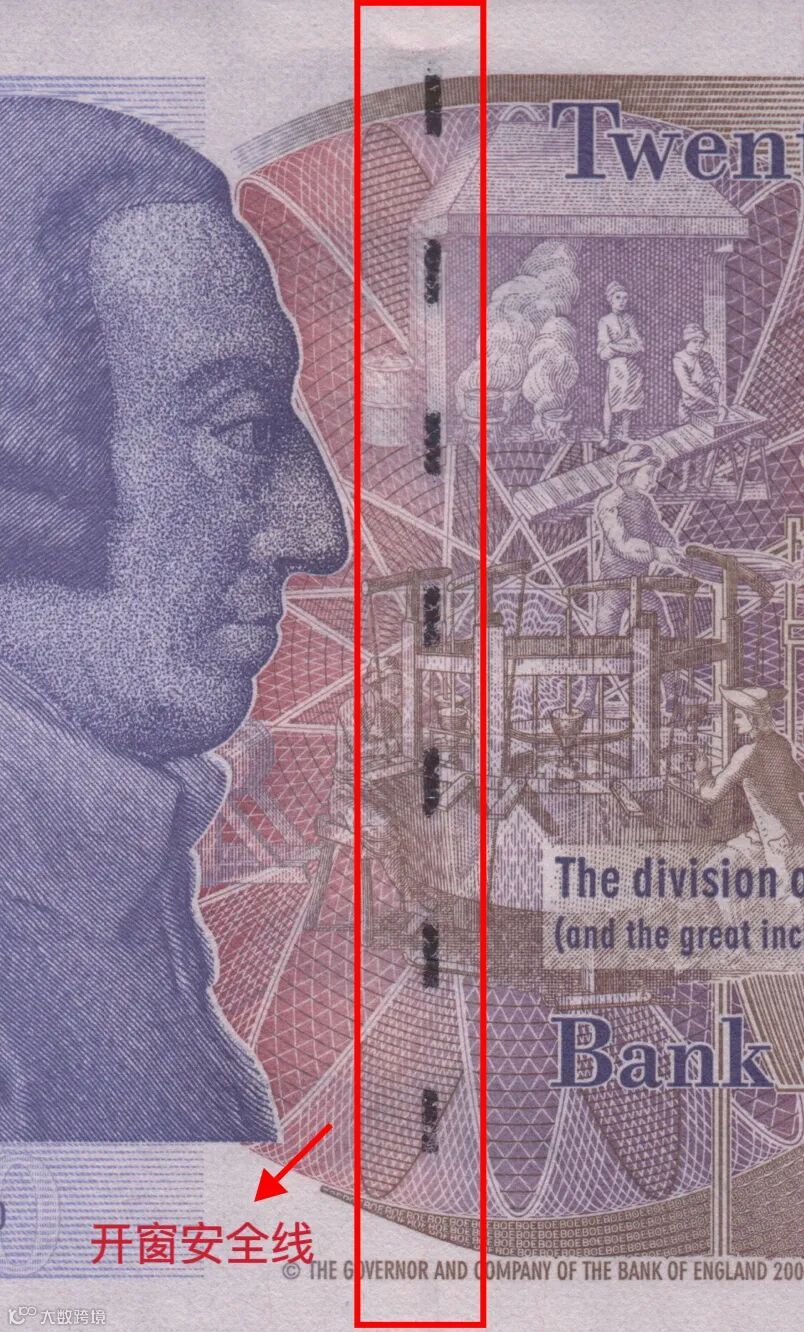 2、诸多高科技防伪技术运用到钞票中。从满版水印到第一次将安全线运用到纸币中,英镑的防伪技术一直在前进之中。