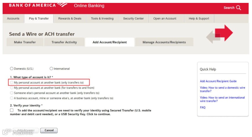 以 Bank of America(BOA)为例,需先将 Wise 添加为外部账户(External Account),输入由 Wise 提供的 Routing 和 Account Number,并完成小额验证(通常 $20 存入即可激活)[k]。