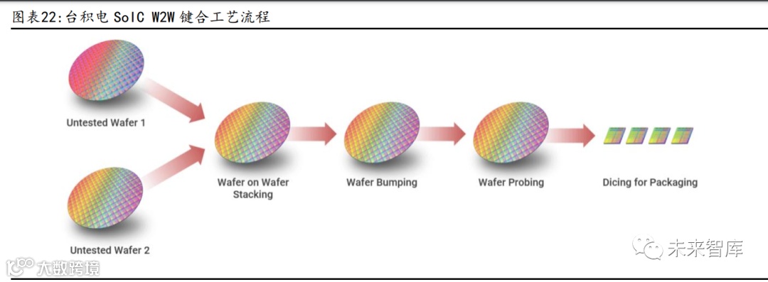 W2W代表技术为台积电SoIC-WoW,通过晶圆堆叠实现3D集成,具备高键合密度、低功耗与小尺寸优势,适用于高良率、同尺寸芯片设计[[k]]。