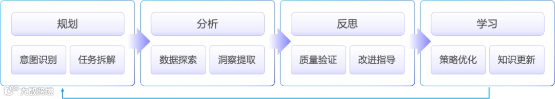 如下图,Data Agent 的上下文管理实际上是一个完整的智能认知系统的构建,核心流程如下:从规划,分析,反思到学习,构建一个完整的智能认知系统。
