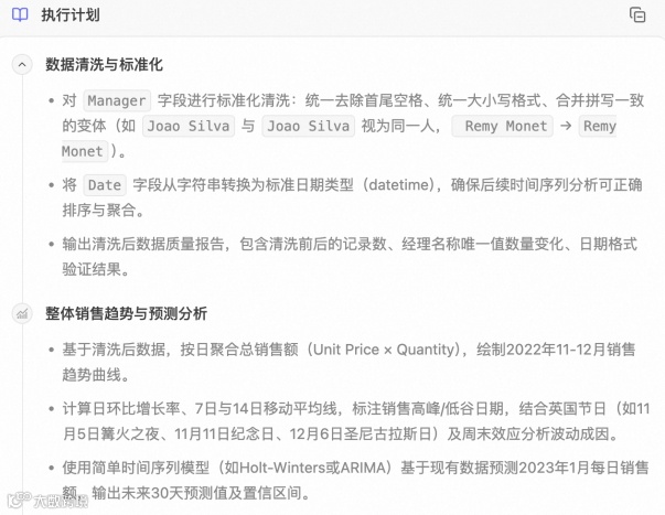 在语义结构明确后,Data Agent 会自动生成意图执行计划,以结构化方式给用户展示分析思路,用户也可以根据需要进行调整。