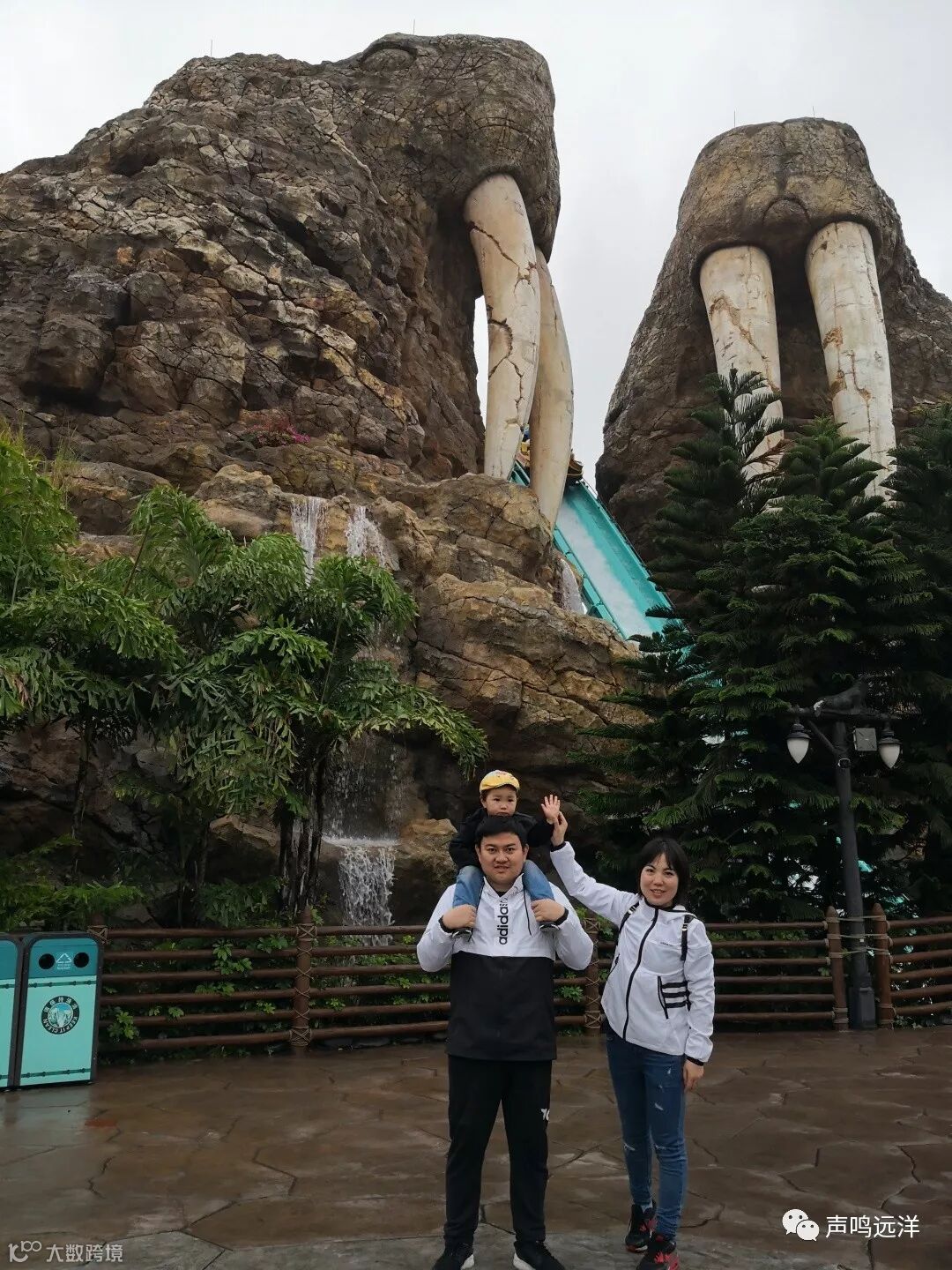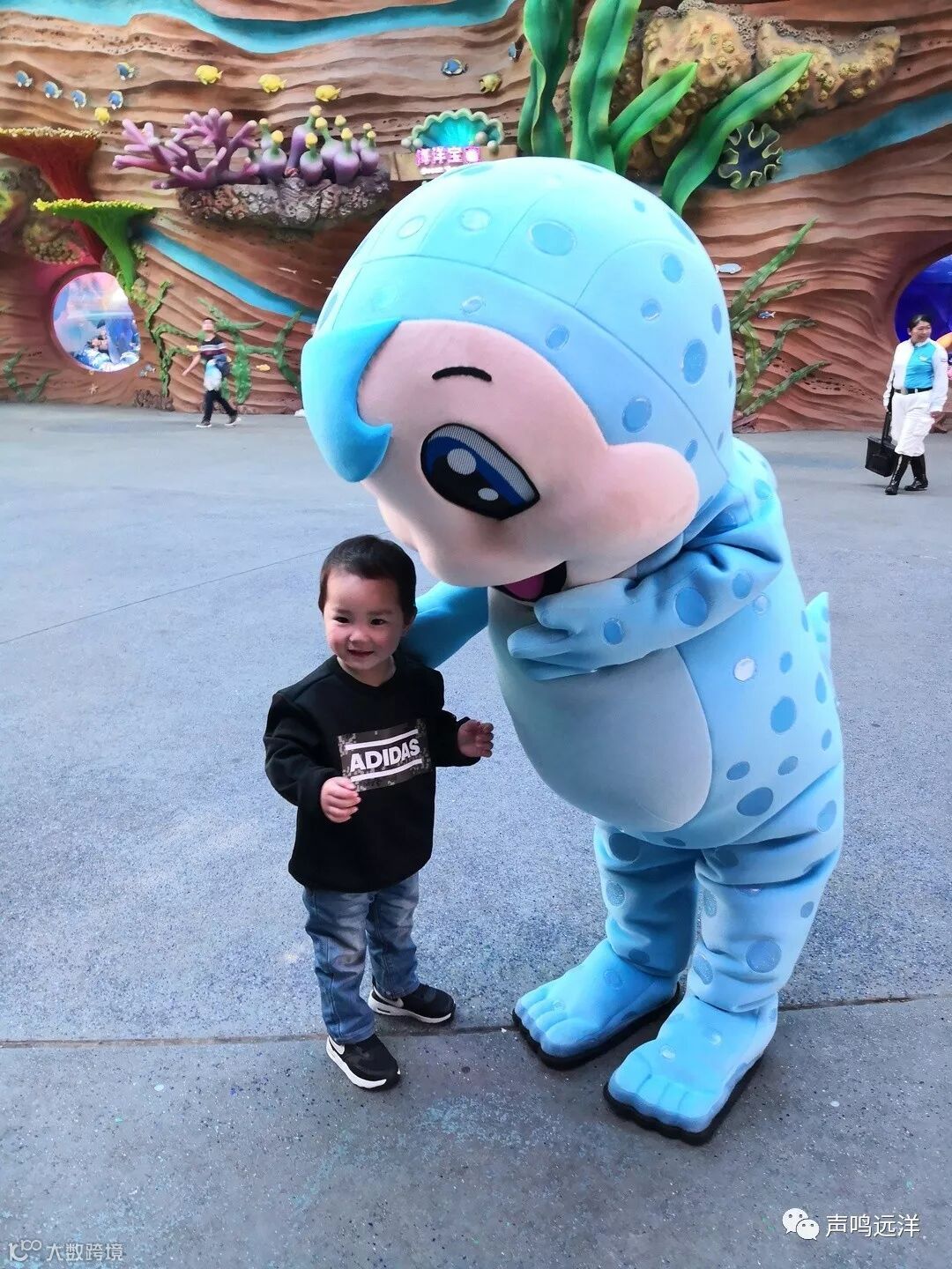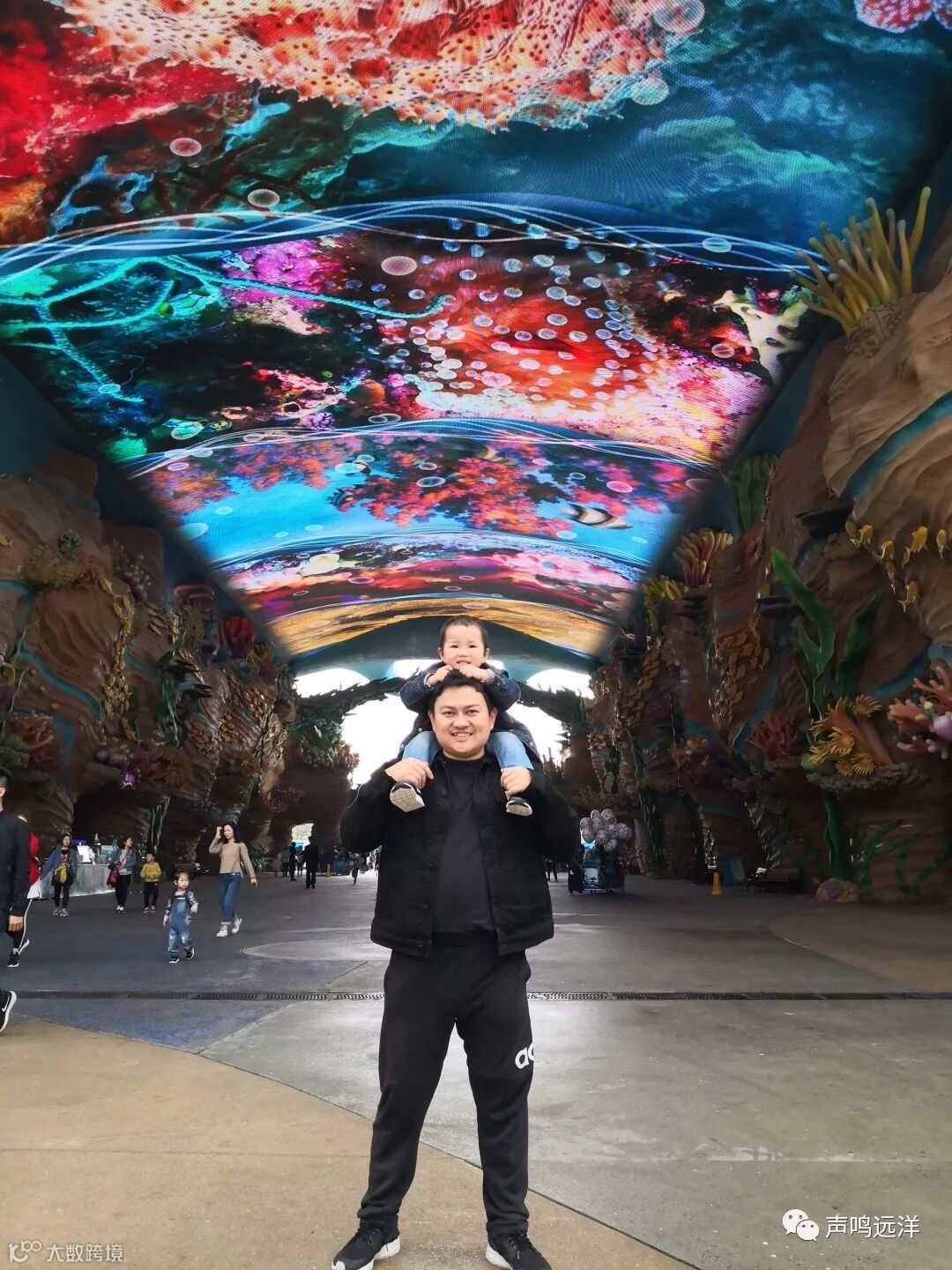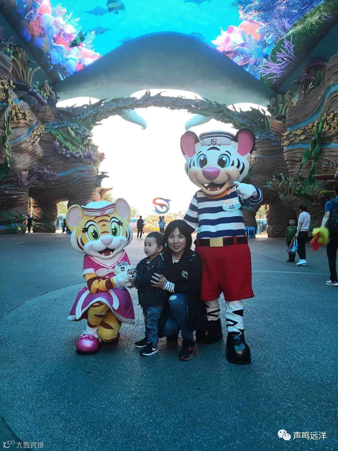 入口的全家福(头顶是巨大的鳐鱼)