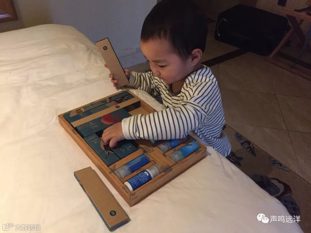 此外,家长们还可以和孩子们用动物模型做游戏。我跟修远兮最常玩的两个自创游戏一是“看谁拿得多”,将所有的动物模型放在一堆,开始命令发出后,谁能说出海洋动物的英文名就可以把该动物拿走,最后看谁拿得多;二是“转盘游戏”,把所有动物围成圆圈,用锯鳐的锯子般的长嘴巴当指针,依次转动锯鳐,指针指向哪个动物就要说出它的英文名,说对了可以拿走,说错或不会说则不能拿换下一个人转转盘,最后还是谁拿得多获胜。(游戏时,大部分情况我会让故意放慢速度让修远兮获胜,一是多给他开口说的机会,二是建立他的自信;不过偶尔也需要“打败”修远兮,让他有紧迫感,品尝到失败的滋味,不断进步。