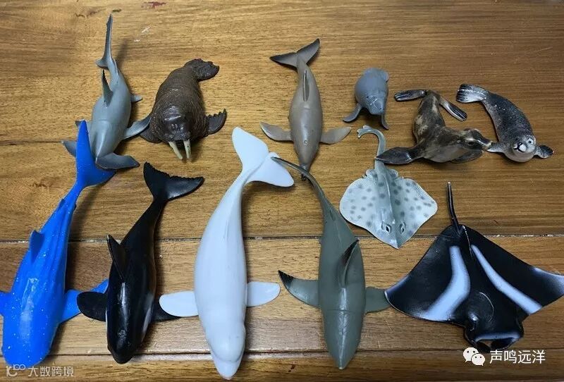 在网上购买各类海洋动物的模型,让孩子提前对海洋动物的颜色、长相、身形有直观的印象。个人觉得立体的动物模型要比卡片好很多,儿子现在经常会拿着动物模型进行角色扮演。
