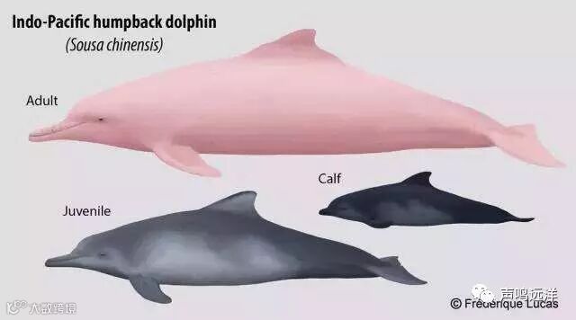 刚出生的幼豚是灰黑色的;随着年龄的增长体表颜色渐退(深灰色);接近性成熟时身体局部完全褪色,形成白底黑点的模样;中老年时褪去身上所有斑点,成为名副其实的“白海豚”。